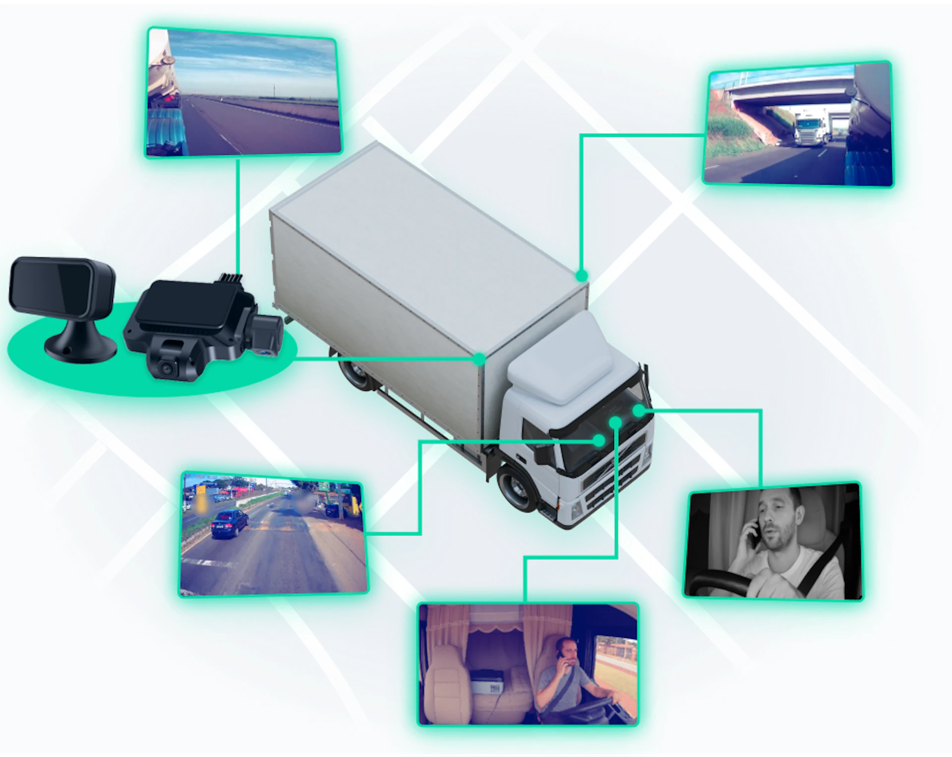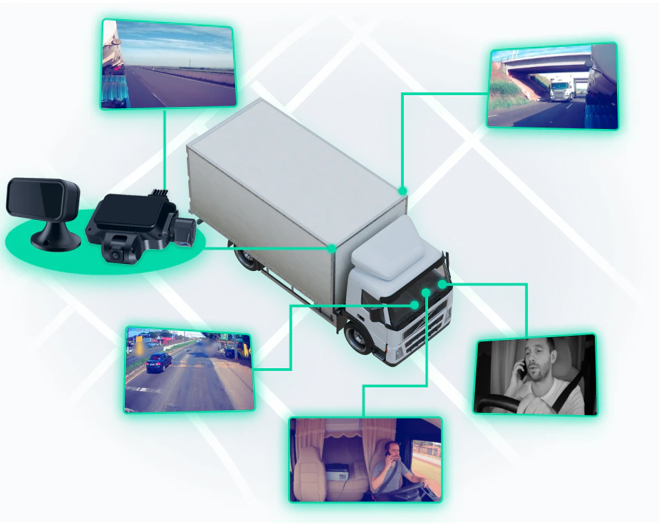 Conte com até cinco câmeras posicionadas onde sua operação mais precisa e tenha uma visão completa de tudo o que acontece dentro e fora dos seus veículos.